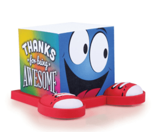 Who wouldn’t want a goofy guy themed note cube on their desk? Thank them for being awesome with this fabulous ready-to-give 550-sheet adhesive note cube.