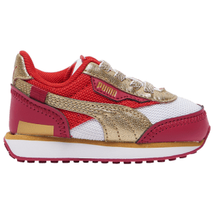 Take a ride on the fun side with these PUMA Future Rider Toddler Girl Shoes are the future of casual-cool street style with their new slim Federbein and ultra comfortable Rider Foam. Designed with simplistic iconic features like super-light, padded nylon, suede, leather reinforcements, and the shock-absorbing outsoles.