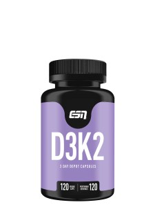 Das ESN Vitamin D3+K2-Depot unterstützt eine ausgewogene Ernährung durch Ergänzung der fettlöslichen Vitamine D3 und K2.