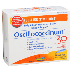 Oscillococcinum is a patented homeopathic product manufactured by Boiron Laboratories. It is made from the heart and liver of wild duck. Homeopathic products are extreme dilutions of active ingredients. They are often so diluted that they don’t contain any active medicine.