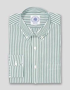 HUNTER GREEN/WHITE BUTCHER STRIPE BROADCLOTH DRESS SHIRT