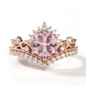 Jeulia Crown Design Round Cut Synthetic Morganite Sterling Silver Ring: $105.