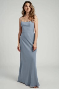 The Shoshanna chiffon dress is a chic and classic option for any bridal party. Featuring a flattering scoop neck and delicate spaghetti straps, it offers the clean look of a slip dress with a bit more structure for added support. The bias cut skirt skims your curves beautifully for a sleek silhouette.