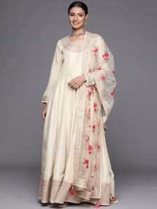 Off White Embroidered Pure Silk Suit Set : ₹8,499