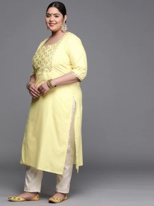 Plus Size Yellow Yoke Design Cotton Silk Kurta : ₹799