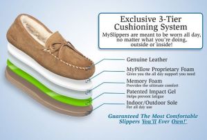 When I created my new MySlippers I wanted it to have everything you could need in a slipper. I wanted a slipper that was more comfortable than anything before it but also durable enough to wear all day, indoors and outdoors. That’s why I developed an exclusive 3-tier cushioning system that combines two layers of foam with a patented impact gel to keep you from wanting to ever take them off. But I didn’t stop there, I finished my MySlippers with beautiful leather suede, cozy faux fur linings and an indoor/outdoor sole. I guarantee these will be the most comfortable slippers you’ll ever own!.