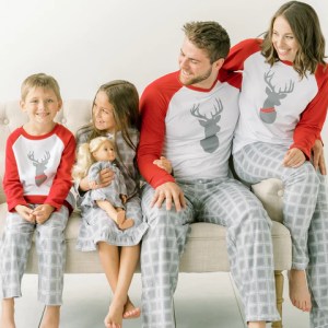 Snuggle up in the colder months with festive grey plaid deer long sleeve baseball tee and coordinating fleece all-over print pajama pants perfect for the whole family, couples, mommy and me, daddy and me, or mom and daughter! This pajama is sure to keep everyone warm and cozy so that you can cuddle up and relax all winter long. Match the whole family with men, women, kids, toddlers, babies and pets to capture the perfect Instagram-worthy post!