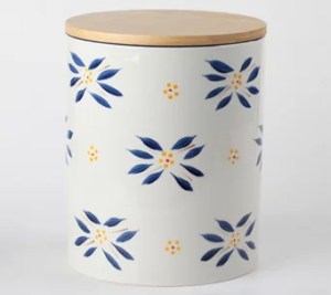 - Includes 5-qt ceramic canister with bamboo wood lid