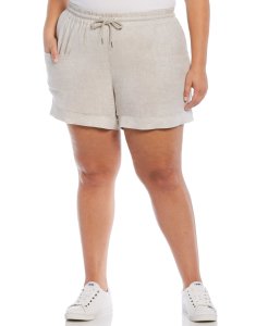 PLUS SIZE SEAMED LINEN DRAWSTRING SHORT : $44.00