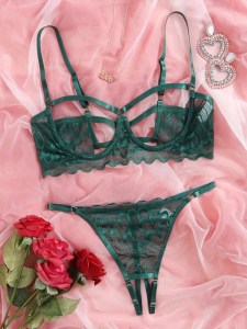 SHEIN : Cut-out Floral Lace Underwire Lingerie Set