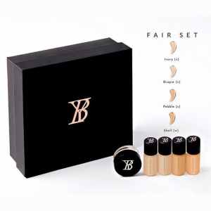 Each set includes a coupon code to receive 25% off your next purchase of a FULL SIZE foundation from YBskin.com once you’ve found your match!