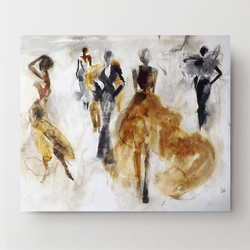 With use of vibrant colors and effortless style, Catwalk embodies the world of high fashion. Highlighting stunning ensembles, statuesque abstract models, shown as dark silhouettes, are juxtaposed against bold hues of color, emphasizing the flowing outfits as the focal point. Infusing its surroundings with vivid color, Catwalk was created as a fashion forward piece with modern flair.